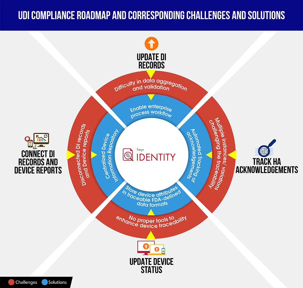 To equip manufacturers with a better stand in such scenarios, here we provide a quick-to understand UDI Compliance challenges vs solutions infographic, which might save your time to decode compliance complexities and better plan ahead and structure the roadmap