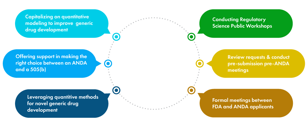 Enhance the generic drug development efficiency while hastening the review and approval process – The FDA is taking several initiatives to ensure that the generic drug’s review and approval process meets all the safety standards before bringing them to the market faster. Below is a representation of how this is done.