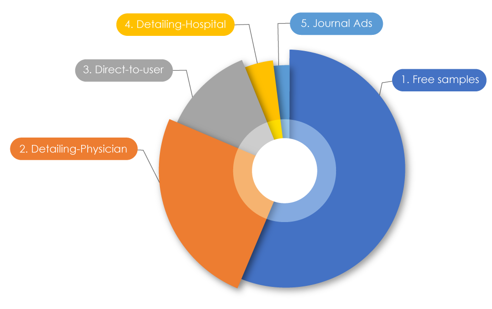 Participating in the current sprint of trends within pharmaceutical companies, total spending on marketing is known to be more than their research budget. Globally, $1.42 trillion was spent worldwide on marketing. In the USA, $486.62 billion was spent in 2021 to market drugs to physicians; in Canada, $29,305.1 million was spent in 2022. When these numbers were broken down, 56% were free samples, 25% were pharmaceutical sales representative "detailing" (promoting drugs directly to) physicians, 12.5% were direct-to-user advertising, 4% were on detailing to hospitals, and 2% were on journal ads2. Sometimes negative marketing practices can affect both patients and the healthcare profession.