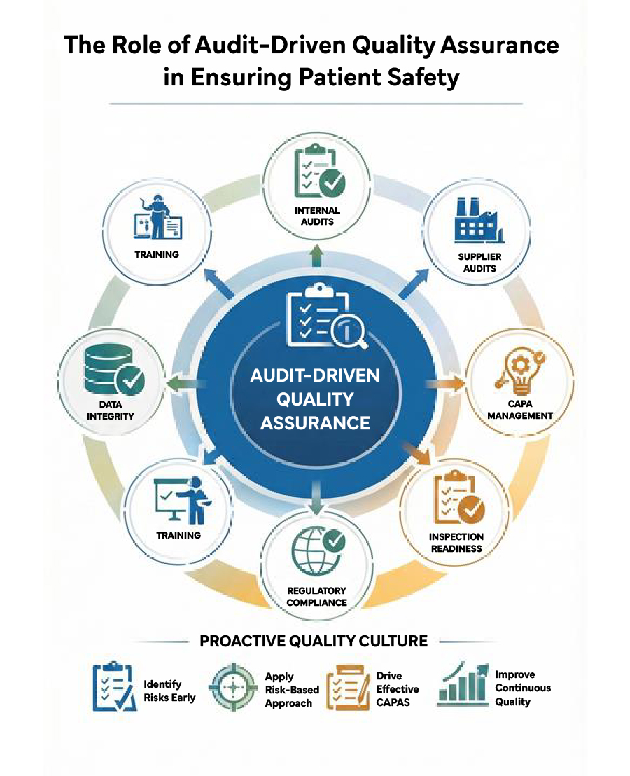 Patient safety is the cornerstone of pharmaceutical operations. Regulatory authorities worldwide expect companies to demonstrate that product quality, safety, and efficacy are maintained throughout the product lifecycle. At the center of this expectation lies audit-driven Quality Assurance (QA), a proactive approach that uses audits as a compliance requirement and as a strategic tool to prevent risks and protect patients.